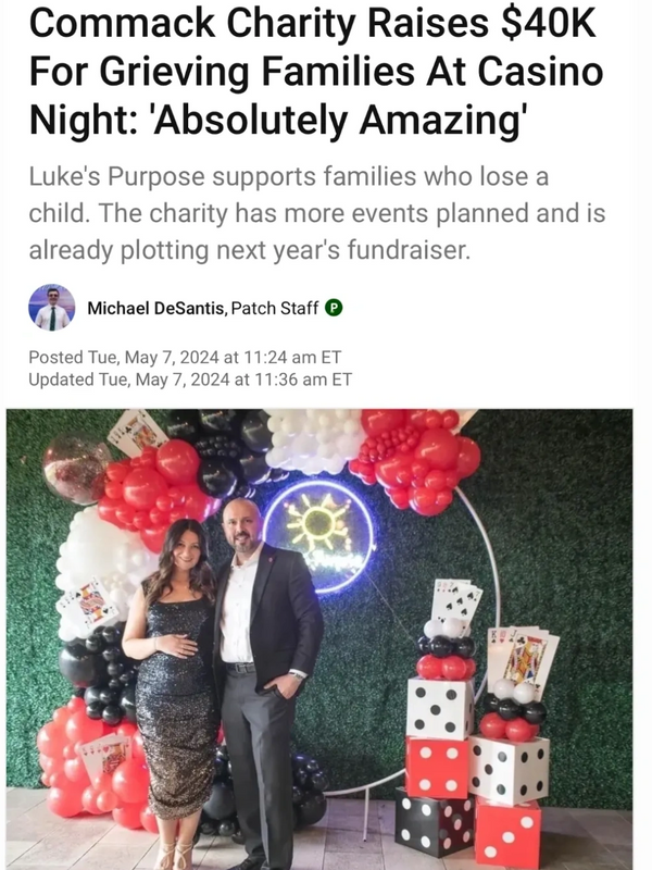Luke's Purpose was featured in the Commack Patch to highlight the success of their second annual fundraiser - Lucky Luke's Casino Night!